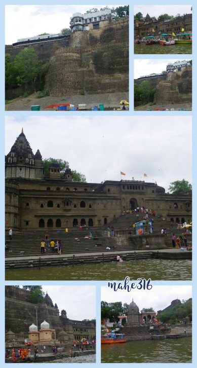 We were at the Shri Trimbakeshwar temple at 6 AM, Sunday morning. It took us about an hour for us to complete the Darshan of our most beloved God, Lord Shiva. We checked out and started to our next destination, Maheshwar by 7 AM. The weather changed drastically immediately we exited Shri Trimbakeshwar, it started raining heavily there and reportedly, it received over 700 mm of rain that created a flood like situation in Trimbakeshwar and Nashik. As we exited Nashik, the weather was dry and sunny. We had a great drive to Maheshwar, which is 380 KMs away from Trimbakeshwar. After a seven hours joyful drive, we reached Maheshwar in Madhya Pradesh at 3:00 PM on Sunday. Maheshwar is an ancient city, which finds its references in the Hindu Holy scriptures including Ramayana and Mahabharata as Maheshmati. A brief account of the ancient history of the city is mentioned this Wikipedia page. It’s history quite interesting. In present time, it has a beautiful fort belonging to the Holkar family who had been the rulers of the city. The city stands as a strong witness to the great work of a person whom I consider the greatest Hindu of all time- Queen Ahilya Bai Holkar. I would restrict my strong urge to explain her achievements in this blog post. When you visit the Maheshwar fort, remember to hire a guide who would walk you through the greatest achievements and sacrifices she made for humanity and Hinduism. You may also refer to a brief account of her on this Wikipedia page. The place is a MUST VISIT for any travel enthusiast interested in Indian history.